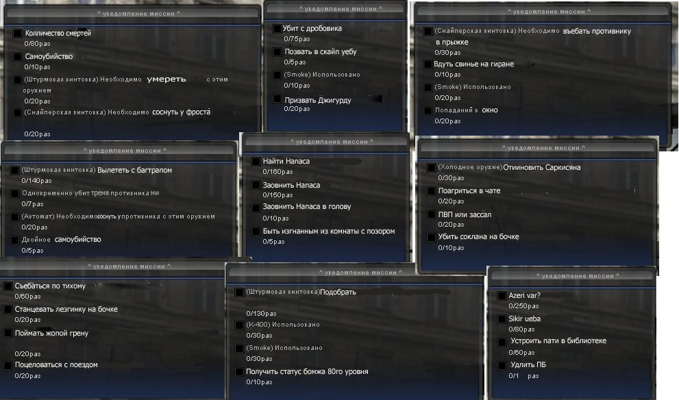 А как же вылететь с ошибкой "Соединение с сервером... 0/80" и "Данный логин в процессе подключения 0/80" и самое шикарное "Заовнить читака с ДН 0/10" и на сладкое "Сказать читерам:"Я ТВОЮ МАМУ ЕЛ!11,ГО В СКАЙП СУКА""