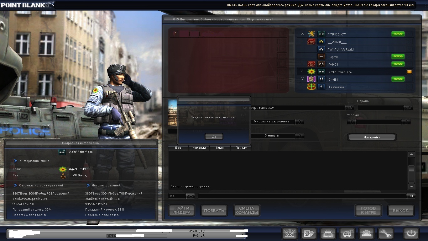 Доброе утро гладовчане! Только сегодня утром у вас есть большая возможность пальнуть клан AoW на гиране ! Сервер : #15 Комната : #1 ![]() Chto uspel zaskrinit to vnizu !!! ![]() P.S Щас он сменил хоста но чтобы проверить пишите в поиске AoW*PokerFace