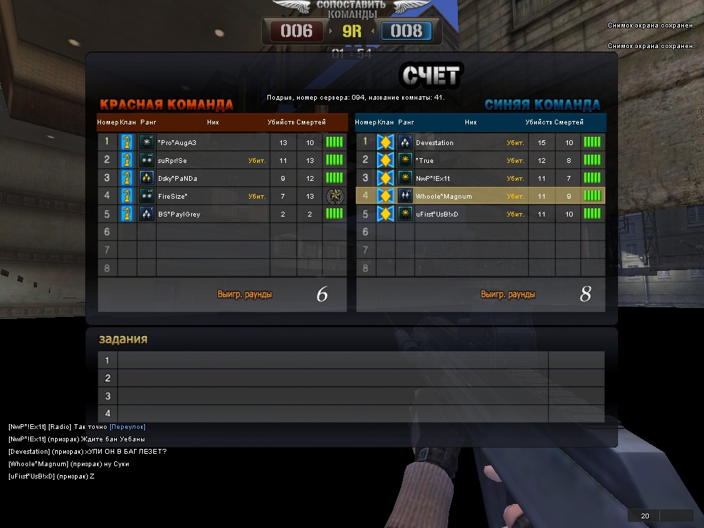 играли кв с кланом SunRise* (там еще гм вроде бы есть) играли играли, ну и выйграли чо . Так вот, кхм. Эти бляди, решили полезть в баг, когда играли с ними смену на ВВГ. Счет был вроде бы 6-6, ясен хуй, из за своей криворукости, они хуйца соснули ![]() заскринить успели лишь 1 уебка, но в баг лезли поочередно двое. Скрины прикрепил. В базу кланов их. |