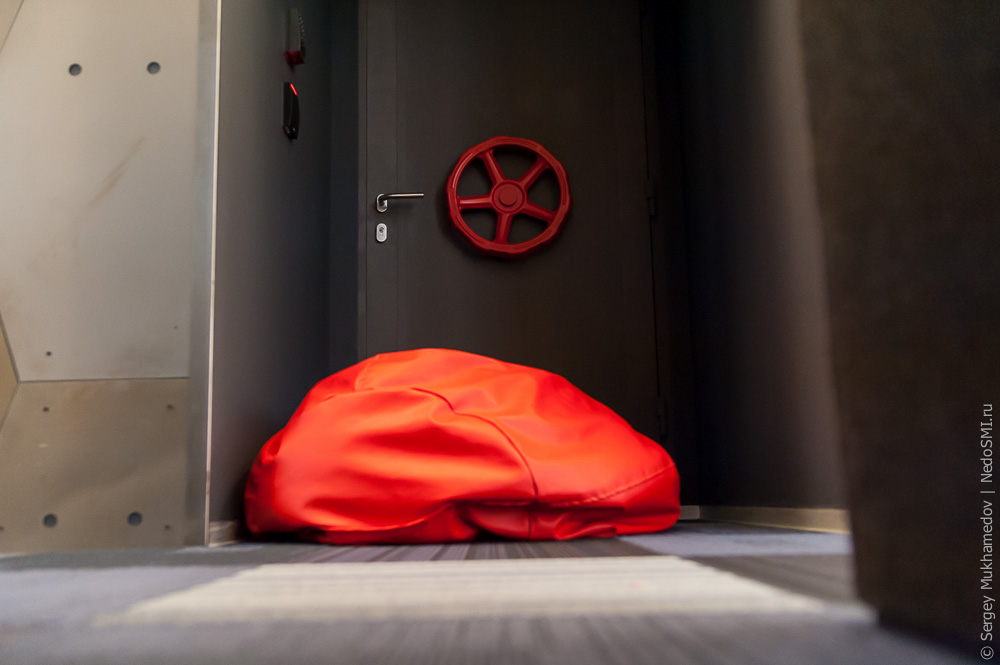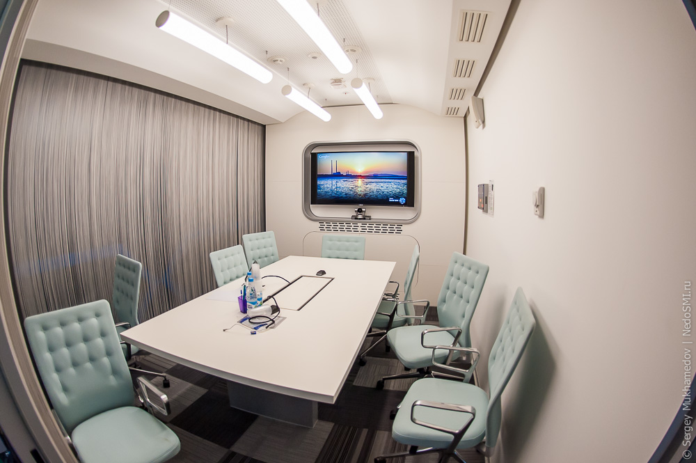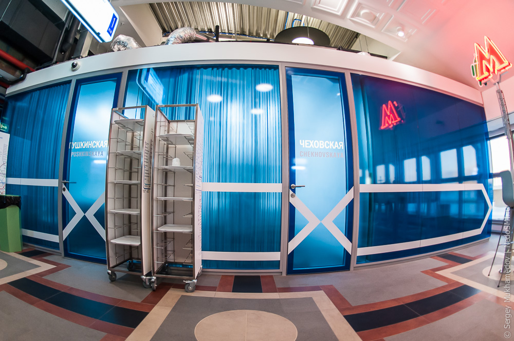 Переговорные комнаты носят имена столичных станций и оформлены под вагоны.