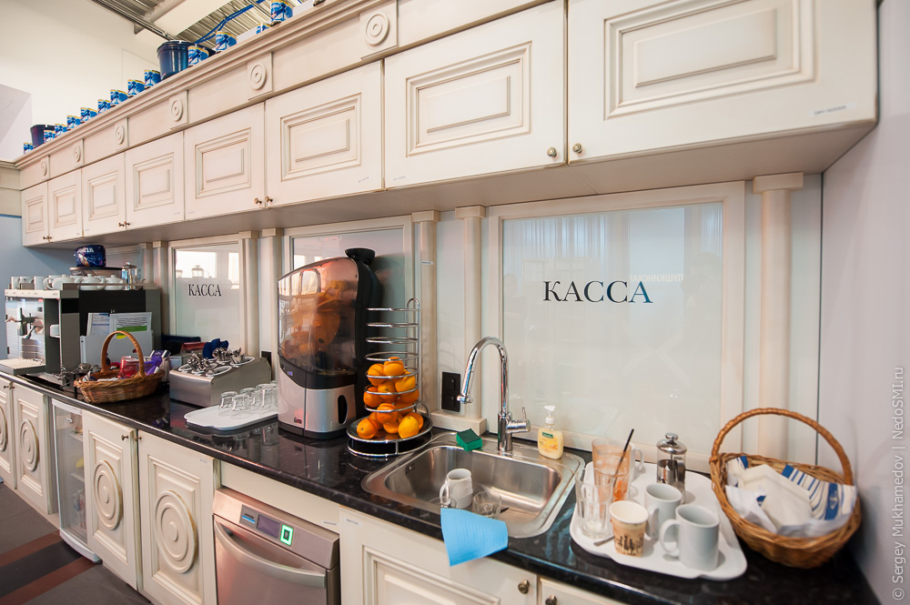 На кухне действует двоичная система распознавания пирожков. Еда и все, что можно найти в офисе - бесплатное.