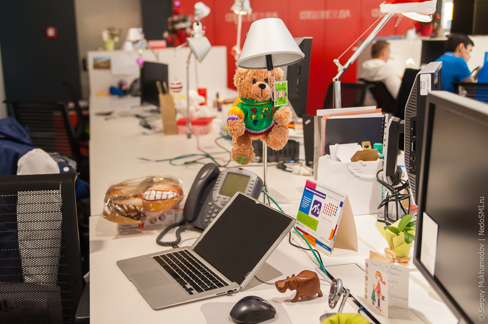 Сотруднику для работы предоставляется все необходимое: канцтовары, usb-кабели, компьютеры и смартфоны. При этом никто не ограничивает использование брендов конкурентов. Сотрудники могут выбрать любые удобные им модели.