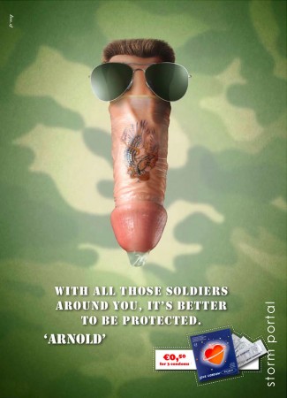 Бельгийское агентство Troy показало пенисы, стилизованные под известных личностей, хвастающихся что они нашли то, что давно искали - презерватив Love Condom.