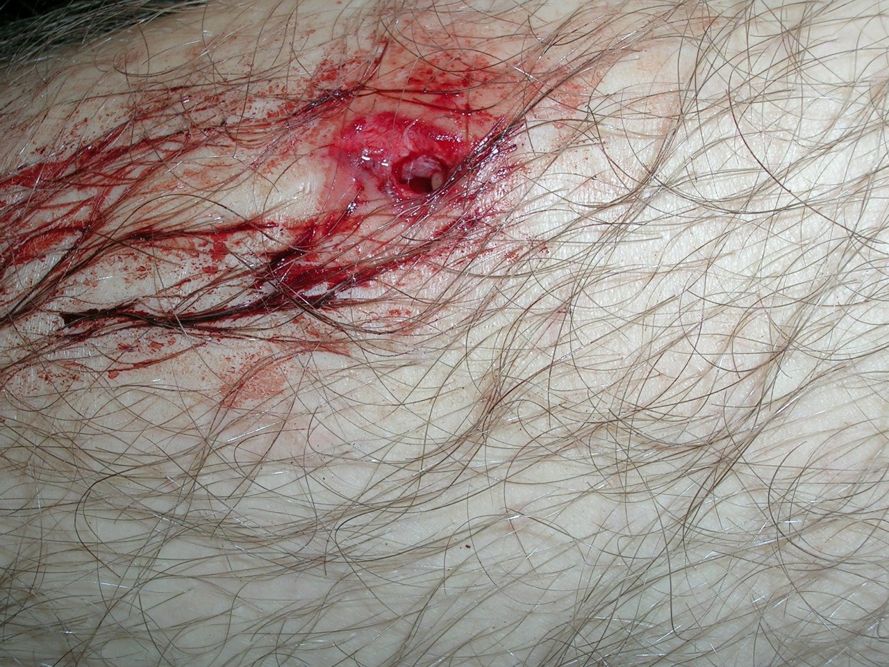 не вогнал, и это даже не проникающее ранение. это я так об кирпич ударился камуфляж+джинсы целы, а ногу рассекло. и блять какая расчлененка.