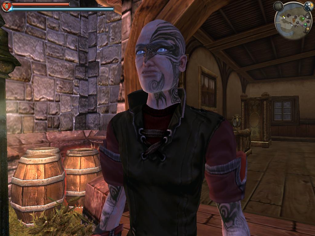 Внешность. Пожалуй, один из минусов игры – невозможность выбрать пол Героя и по своему усмотрению настроить ему фейс. Но все же внешность можно менять по ходу игры. Помимо изменений за счет развития, о котором говорилось выше, есть возможность сделать другую прическу, отрастить различные усы и бороды и даже делать татуировки. В Альбионе (мир игры) есть парикмакер и татуировщик, которые с радостью за ваши деньги сделают вас модным и красивыми (хотя можно сделаться и страшным). Выбирать приходится из того ассортимента моделей причесок и татушек, которые уже есть, но можно находить и новые виды. Все это дело может по-разному влиять на привлекательность персонажа (есть такая шкала, даже две: ужас и привлекательность). Например, одна прическа дает +50 к красоте, а другая +50 к ужасу и допустим -20 красоты. То же самое с татуировками. Все это дело действует подобно карме: красивого героя будут любить еще сильнее, а ходячего ужаса будут «фуу-кать», гнать и ржать, но и бояться тоже. Кстати, если жрать много мяса, бухать пиво как лошадь, то у Героя вырастет брюхо и он получит ожирение, будет бегать жиром трясти, серьезно. Если Герой достаточно привлекателен, на него могут засматриваться женщины, а чем символизирует сердечко, висящее над их головой. Используя различные жесты и подарки, можно влюбить в себя кого-нибудь из них, чтобы в итоге подарить ей обручальное кольцо и жениться. В Альбионе водятся и ахтунги. Их нужно можно убивать.