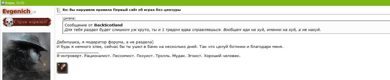 Маньяк I степени Шаурма Злостный флудер