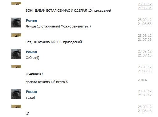 И вообще, меня тут как в армии чморят :D Потом еще заставила на одной ноге приседать. А потом опять отжиматься