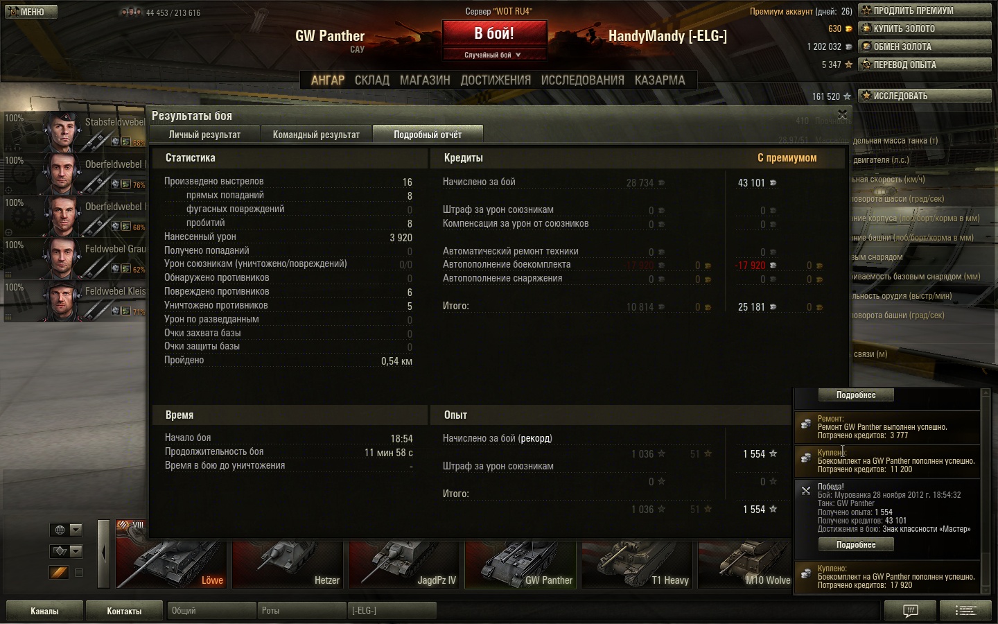 ![]() Т29 48%, тигр хешнелевский 39. Жду когда на него скидка будет... там -40 боёв разница победы/поражения. Правда тигра у меня был падкий на криты, но 39% при 200 боях, это пиздец конечно. |