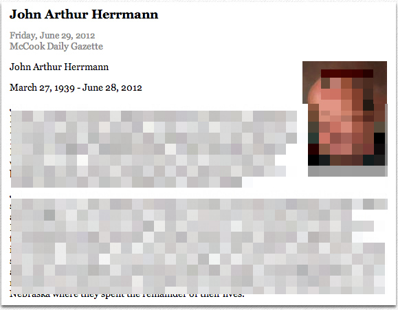 2. Найти некролог на Джона Херманна (любого другого):