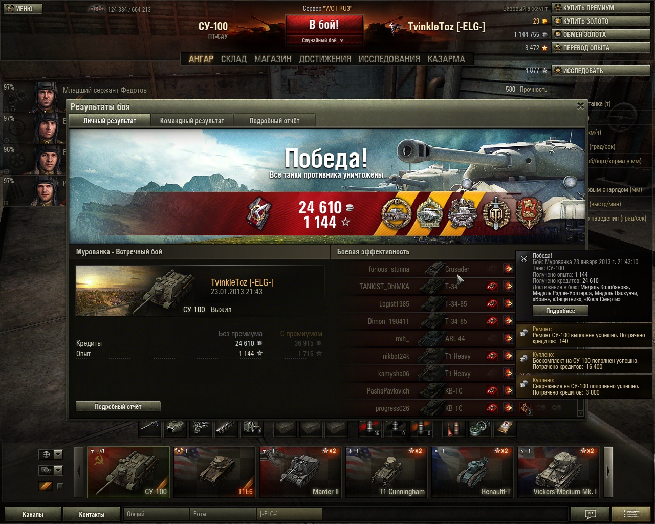 Так там покоцанных сколько было мною, арта попадала без особого урона, базу брали уже, тот везучий поджог КВ-1С, а перед этим 3 промаха по СУ-5. Нормально.