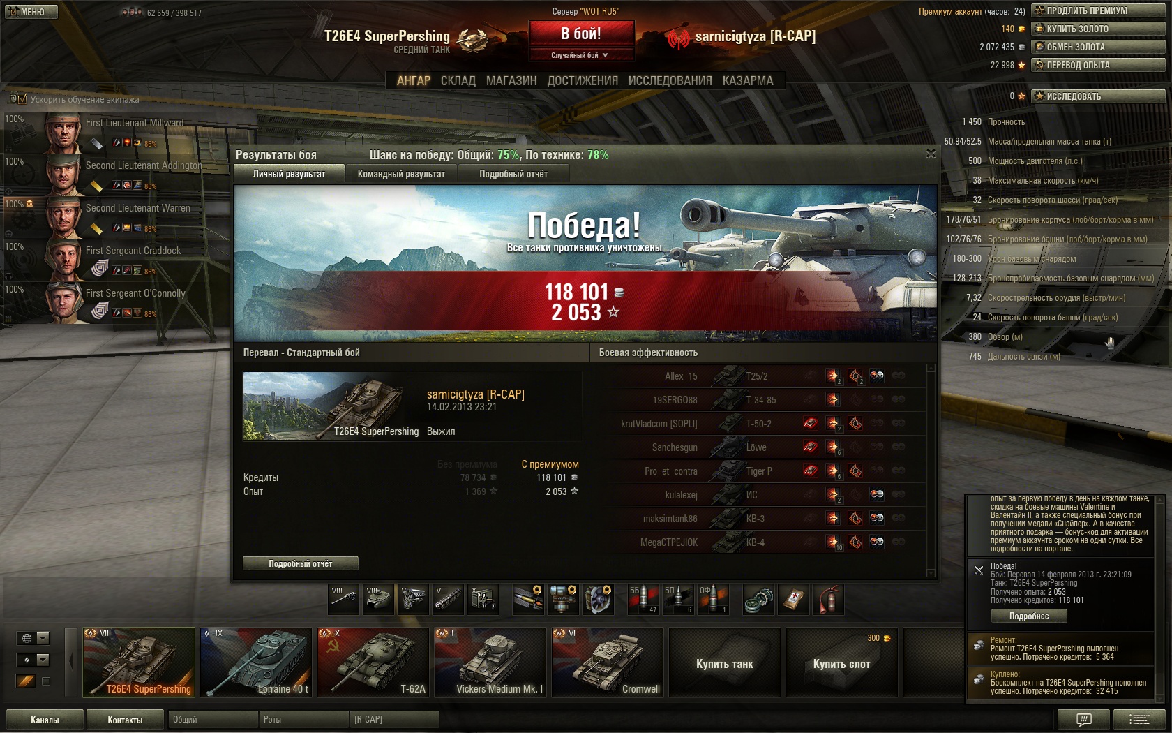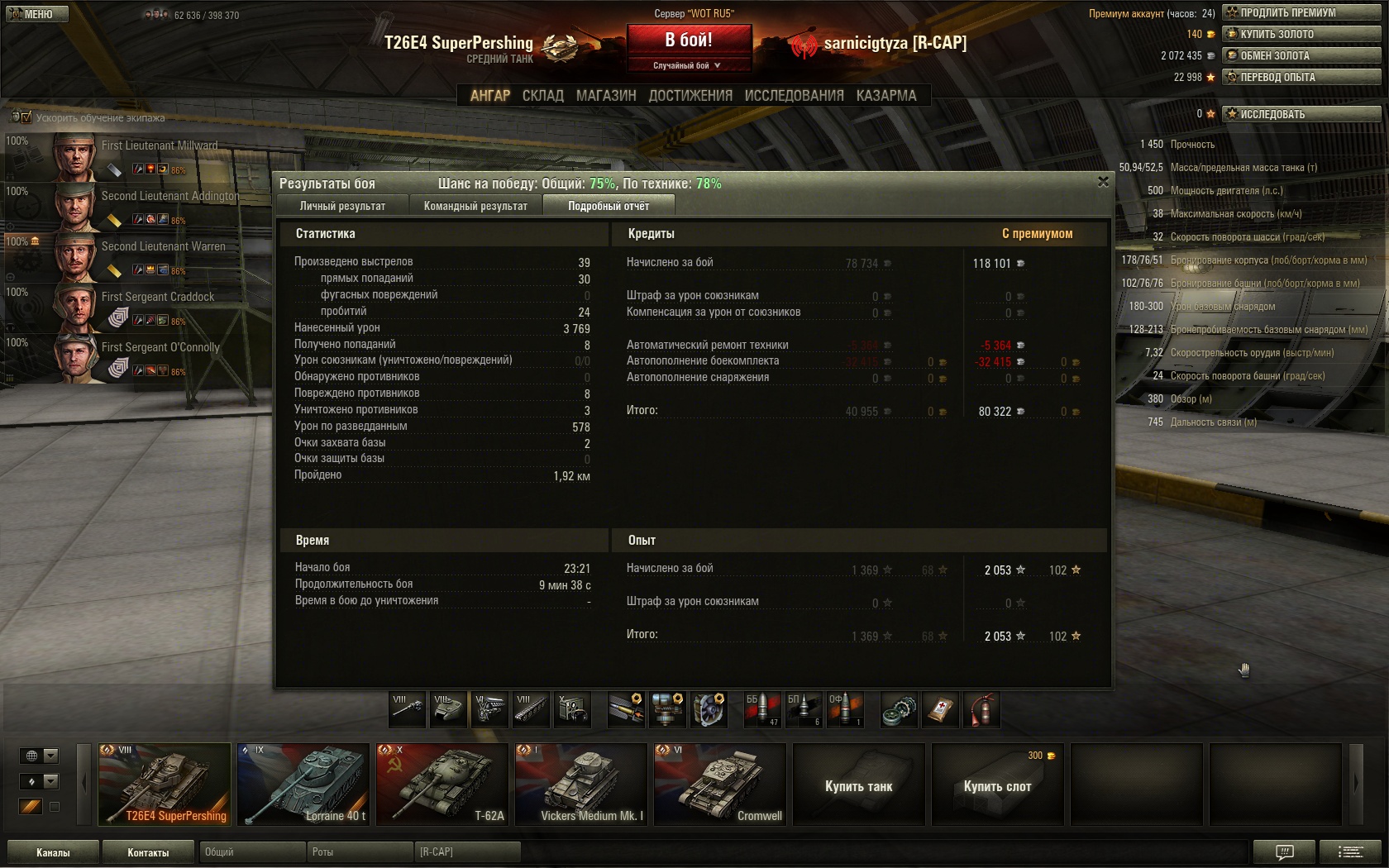 Пушка СП хоть более-менее точная, но пробитие у нее-херня и тому же одноуровневому Льву, КВ-5, КВ-4, Т32, ИС-3, британцам, приходится выцеливать слабые зоны, а не стелять в корпус куда попало, что со 150м+ уже сделать сложно. Единственный варик-подъехать ближе и вести бой с 1 линии. Или голдой хуярить, чего я обычно не делаю (в реплее КВ-4 редкое исключение) |