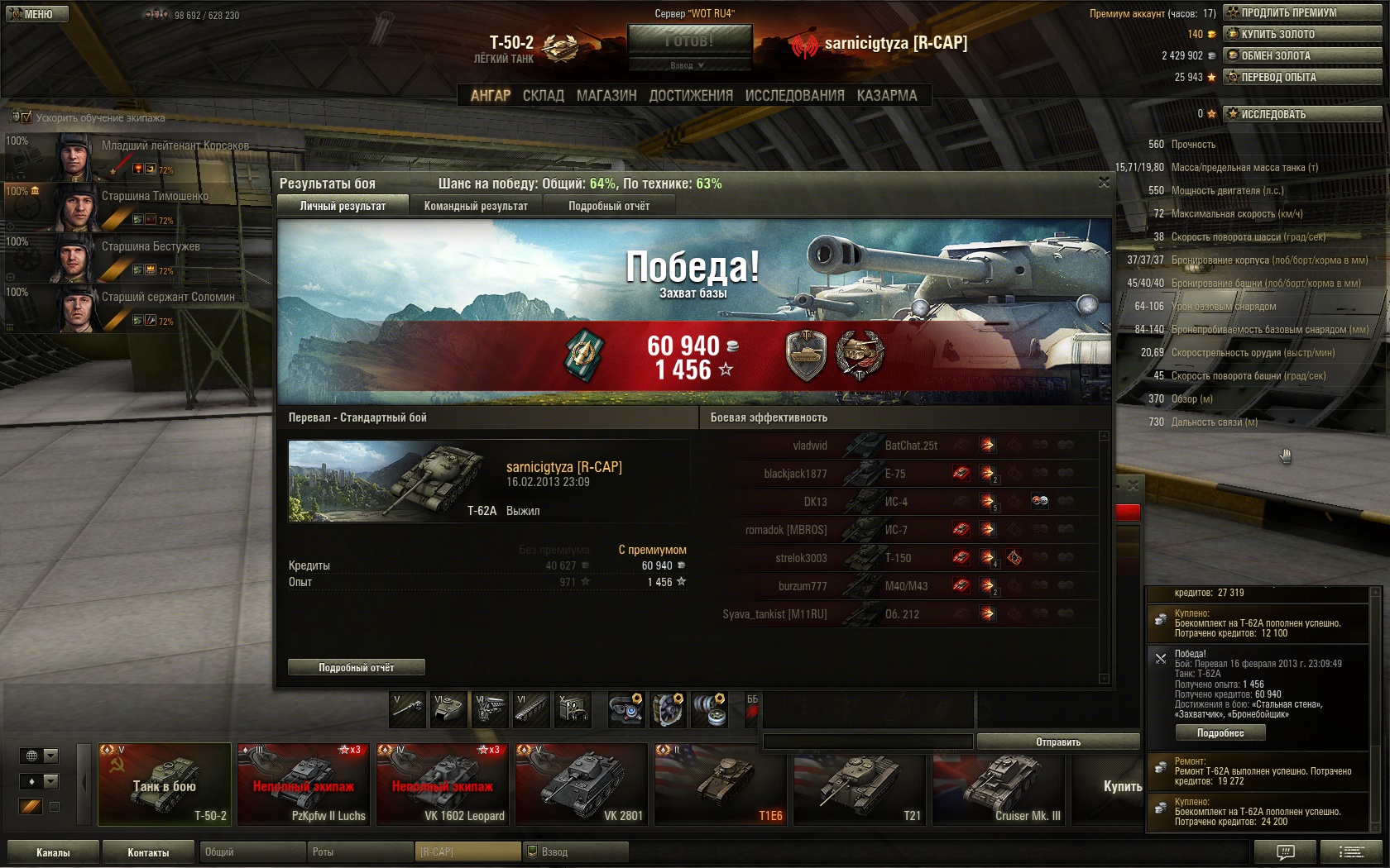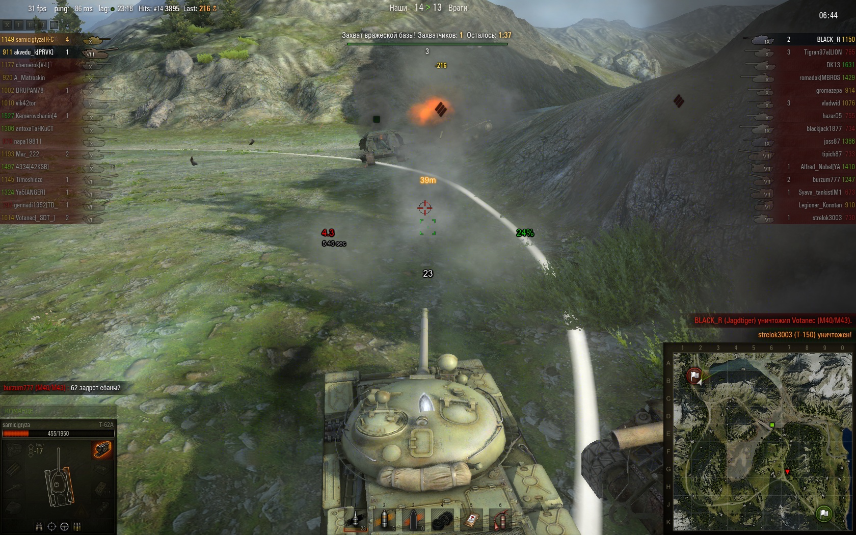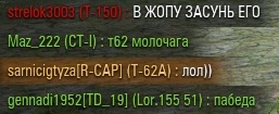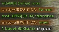 Я смог! Хоть тут и не очень сложно было, но мне приятно. До этого при таком же раскладе в нашей команде, еще ИС-7 убил. ![]() Приятно, когда тебя хвалят ![]() И это первые очки захвата базы с выхода новой формулы расчета рейта. Но тут иначе никак было. Последний раз редактировалось Evgenich; 16.02.2013 в 23:37. |