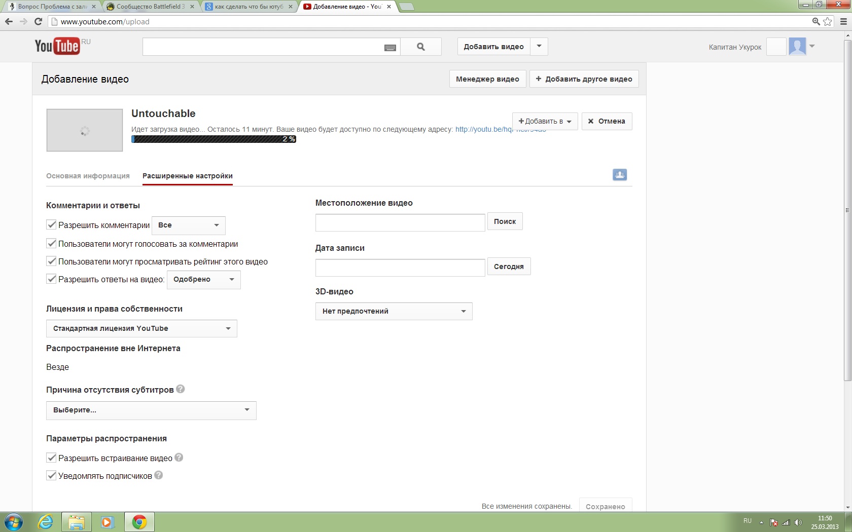 По умолчанию Проблема с заливкой видео на ютуб