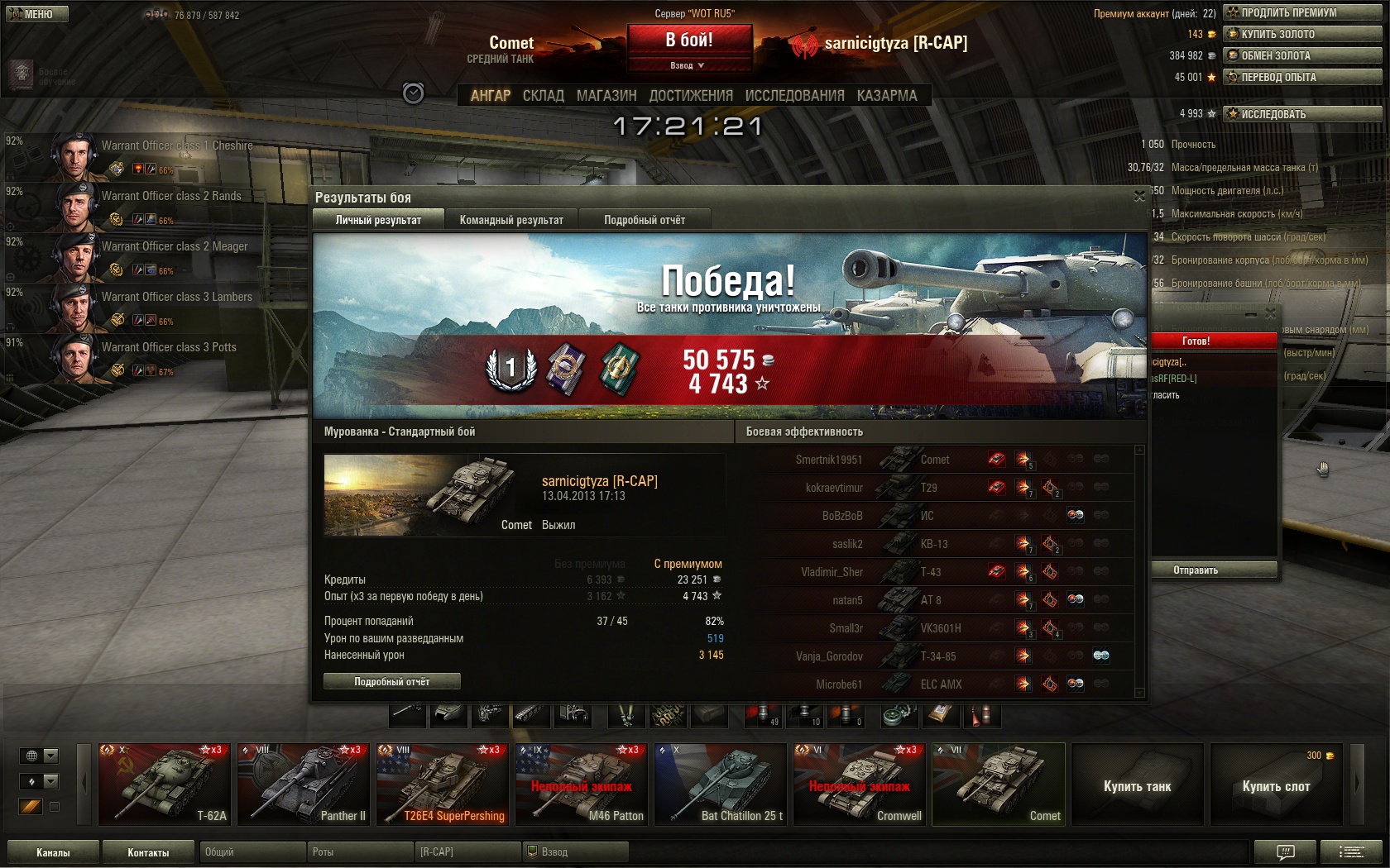 T29 исследован. Потрачено нераспределённого опыта 55131, свободного опыта 369.