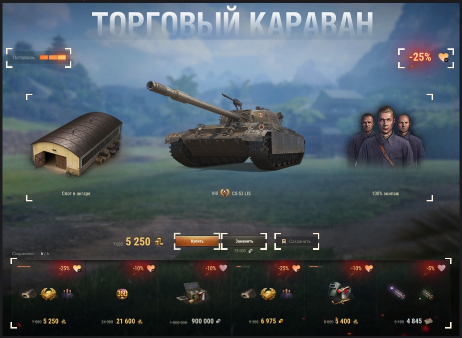 - CS-52 LIS+слот+100% экипаж за 7 000 золота