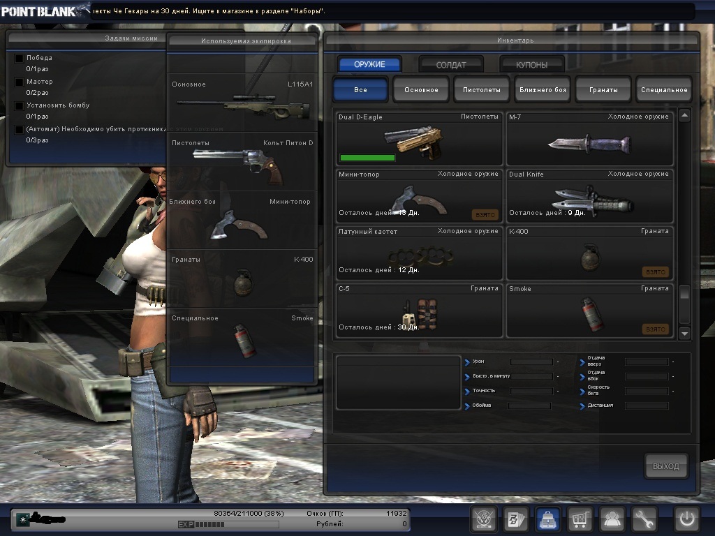 у/с 69%, в голову 47! боев - 4975, поб. - 2847 пор. - 2099 Из оружия - обмот(13 дней), ауг, криссы, СВД, слон и т.д цена от 1к до 1,4к! Оплата только через WEB MONEY За оформление извините, впервые) Скайп - nik10125 ! добавляйтесь с подписью "акк" p.s рплата производится половина суммы, я кидаю акк, потом другая половина суммы! |