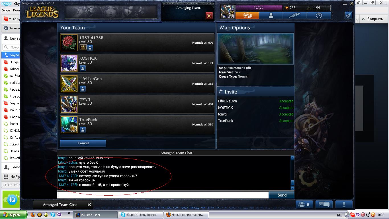 Лайфа винить сложно,он или просто играл фри тариком,или еще не научился играть. Ты пишешь:"я заиницировал замес,а вы должны убивать." До замесов я имел 6-0,после - 7-6.Тебе объяснить почему или сам дойдешь до вывода?. p.s.Я критикую за дело,поэтому не надо здесь этих глупых рассказов.