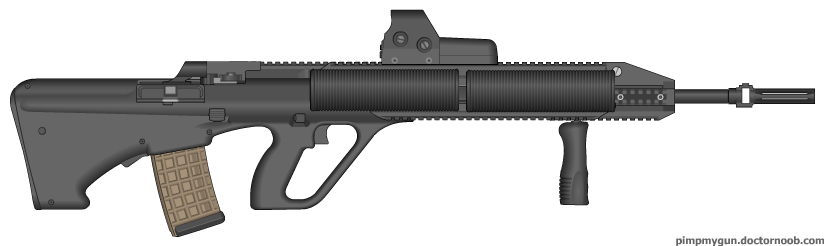 ![]() В последней работе отошел от привычной бело-черной тематики,ибо при создании сего творения думал об вооружении для груп захвата,а белая пушка слишком бы выделялась,хотя эта расцеветка тоже не сама удачная