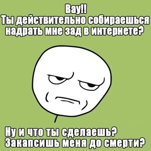 ![]() ---------- Post added at 09:36 ---------- Previous post was at 09:34 ---------- Этот человек не хочет чтоб я перед ним как тряпка ползал.Это уже было и меня просто отшили.А сейчас наоборот -_- Это ты как лох cдаваться привык.А мне девчонки никогда не отказывали окда? |
