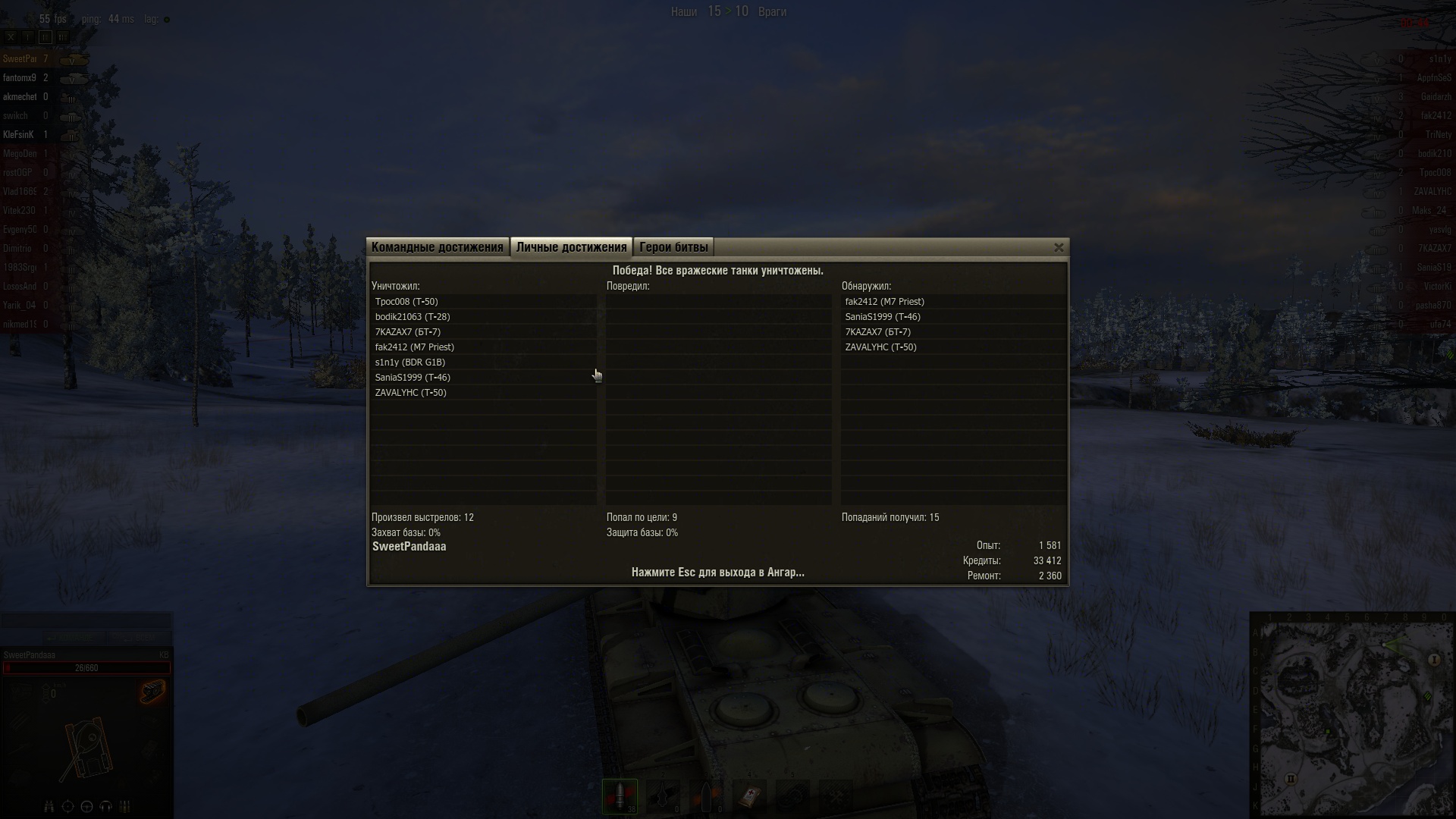 Победа! Бой: Заполярье 22 февраля 2012 г. 17.11.48 Танк: КВ Получено опыта: 1ОВНЕД!!1!581 Получено кредитов: 33ОВНЕД!!1!412 Достижения в бою: «Стальная cтена», «Воин», «Бронебойщик», «Коса Смерти» Спасибку тыкнул,чтобы я еще так смог! Последний раз редактировалось z33bra; 22.02.2012 в 18:29.  |