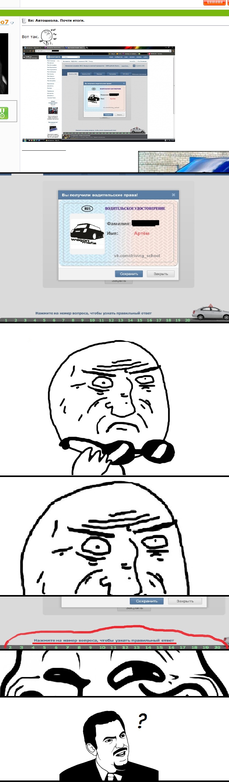 у нас препод норм был,я даже нихуя книжку не читал,слушал его только (благо разжовывал все четко). + норм память = профит. билеты 1 раз решил и дальше так пролистывал от делать нечего. так что если препод ровный, лучше его слушайте.гном хз чо там у тебя сложно,по мне так теория не сложная. на счет заплатил@получил,чет 250 бакинов за одну категорию много,я за С -800грн,а за Б касарь отдал (за вождение).говорят там на Б хуй сдашь (у нас так) и кстати мужик-инструктор тоже охуенно.сидит анекдоты травит и баб мимо которых едем обсуждает,+ на мужские темы побазарить можно lollol (ну это офк не все такие, хорошо что у меня такой был) |
