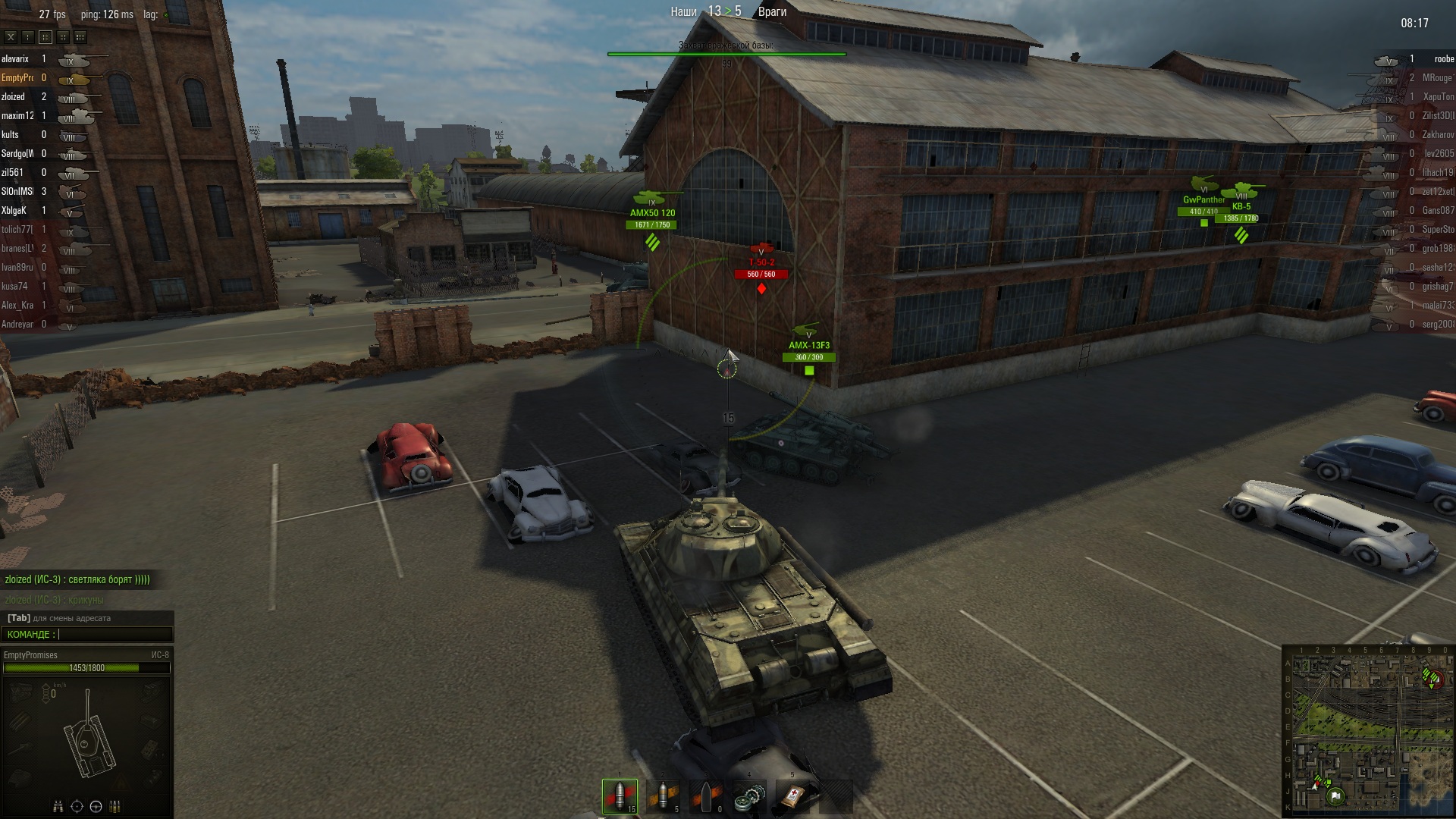 В конце боя вражеский светляк поехал на базу и.. застрял внутри одного из зданий. Выехать не мог, попасть не могли.