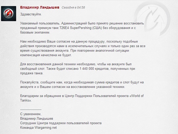 А потом докинь бабла и купи прем нормальный. Хотя, у тебя вроде Т34 есть... Ну хз, может прем на 3 месяца закинуть. И вообще. |
