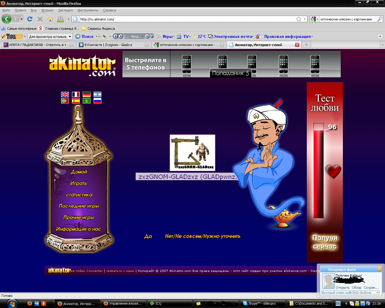 Даже ебаный чародей Акинатор выбирает меня!!111!!! |