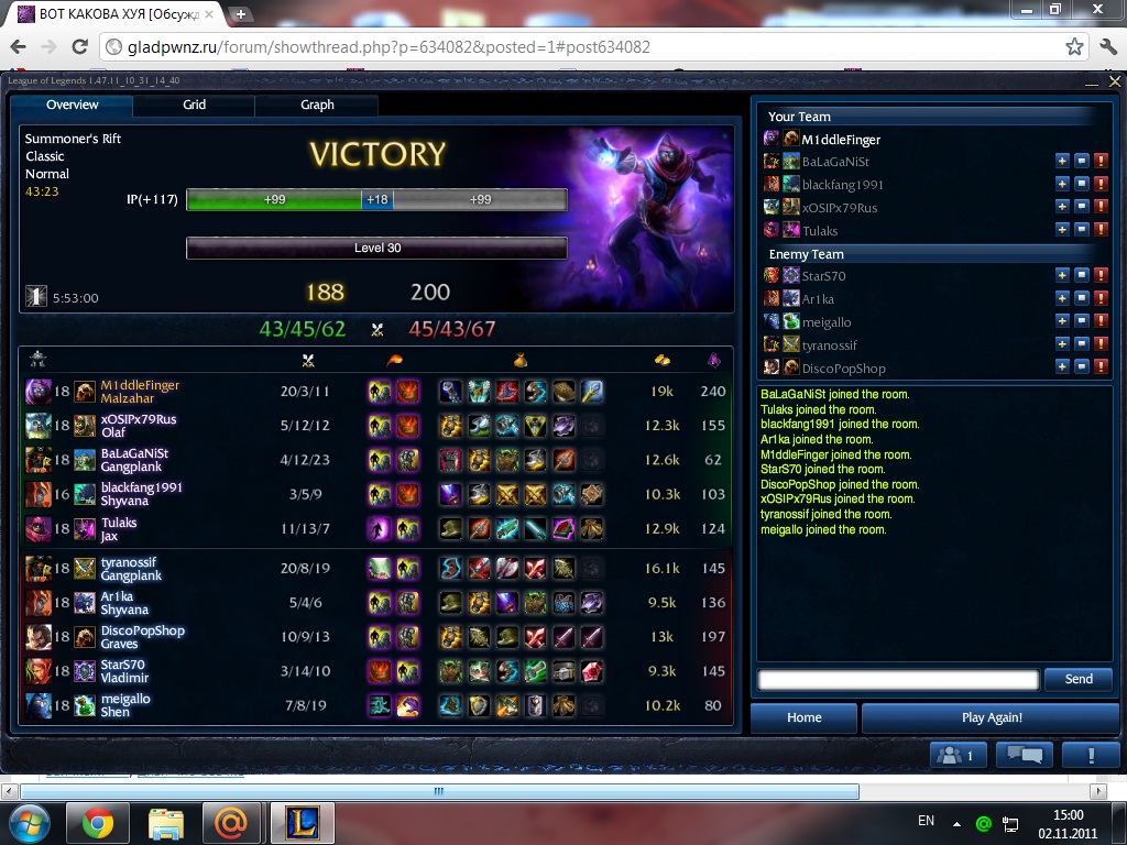 ты не в теме. ---------- Post added at 08:13 ---------- Previous post was at 08:10 ---------- Сказочные далбоёбы http://www.youtube.com/watch?v=mM5YD...yer_detailpage ---------- Post added at 10:07 ---------- Previous post was at 08:13 ---------- Люблю дайруса. После его троллинга ранкеда за лайн олафа бомжи начинают играть так же с таким билдом, собирая армор против ирелии