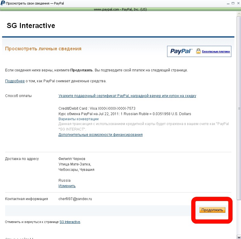 Здесь инфо о покупке, нажимаем Продолжить