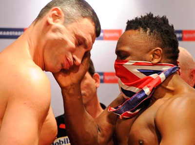 Я сам когда в далеком прошлом занимался этим искусством, да и на самом деле многие из вас хоть раз да посещали секцию по крошилову ебал. Но к сожалению, мне никогда не были интересны бои со стороны, больше футбол любил посмотреть чем то, как два мужика месят друг друга на ринге. Но сегодня совершенно иной случай, так как вчера на взвешивании бойцов, произошел веселый казус - Британец дал пощечину Кличко (яб сраку отложил от такого), за что получил наказание в виде штрафа на 50 кусков уе. Все это несомненно накалило обстановку, что даст нам уже не обыденный бой и спорт, а нереальное рубилово ненавистных людей. Макака по утверждению многих аналитиков, не сможет выдержать все бои. Ну думаю, что Кличко то за пощечину ебашить будет за всю хурму. http://www.youtube.com/watch?v=AFtkQnYe3Vk Так, что включаем телевизоры в 23:50, настраиваем их на телеканал "Россия 2" и наблюдаем за крашиловом. Я думаю, что в инете можно будет глянуть все вакханалию тут.