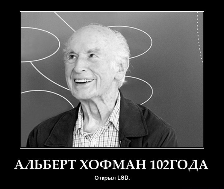 В 1943 году он случайно (ну-ну) попробовал ЛСД, поняв всю прелесть своего открытия, которое на время наполнило окружающий его мир калейдоскопической игрой цветов.